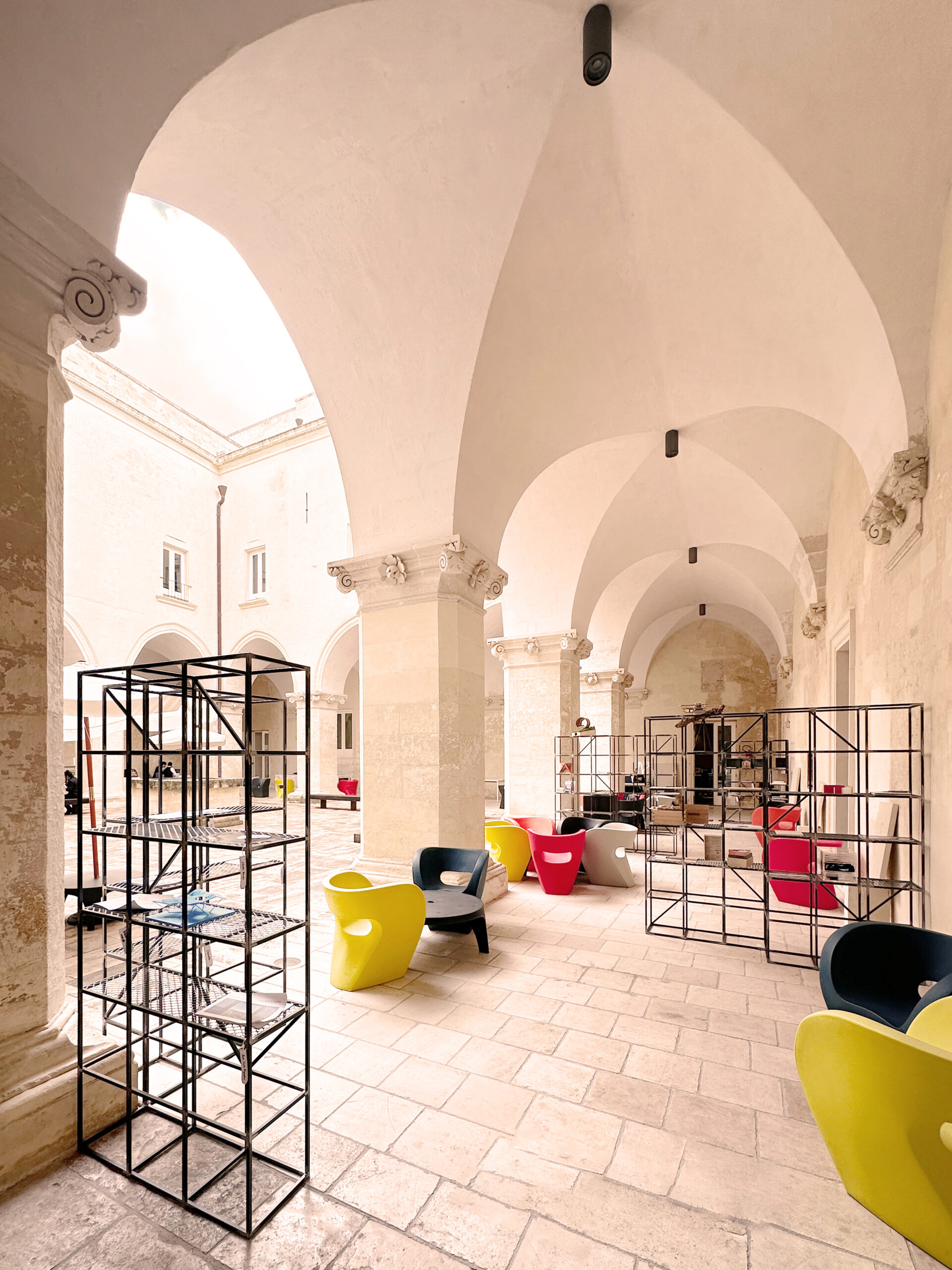 The design for the RE-FRAME Exhibition within the 2025 “Architects Meet In Lecce” international Event unfolds as a sequence of slender totems, built through a rigorous spatial grammar of wireframe structures in natural black steel.
